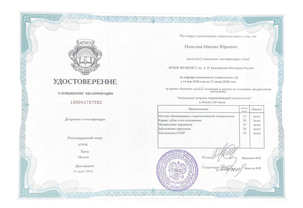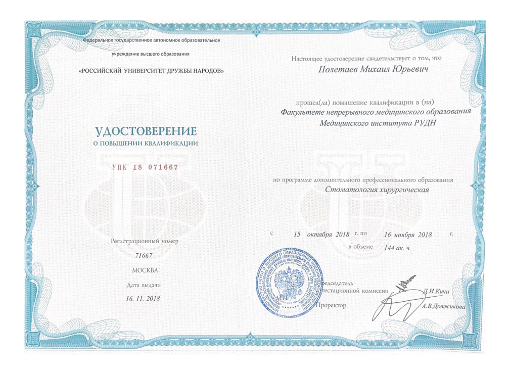 Врач Полетаев Михаил Юрьевич, Москва, регион Московская область и г. Москва, работает по специальности стоматолог, является врачом-стоматологом, принимает в клинике Стоматологический центр «УЛЫБКА+». Стаж работы врача составляет 6 лет.